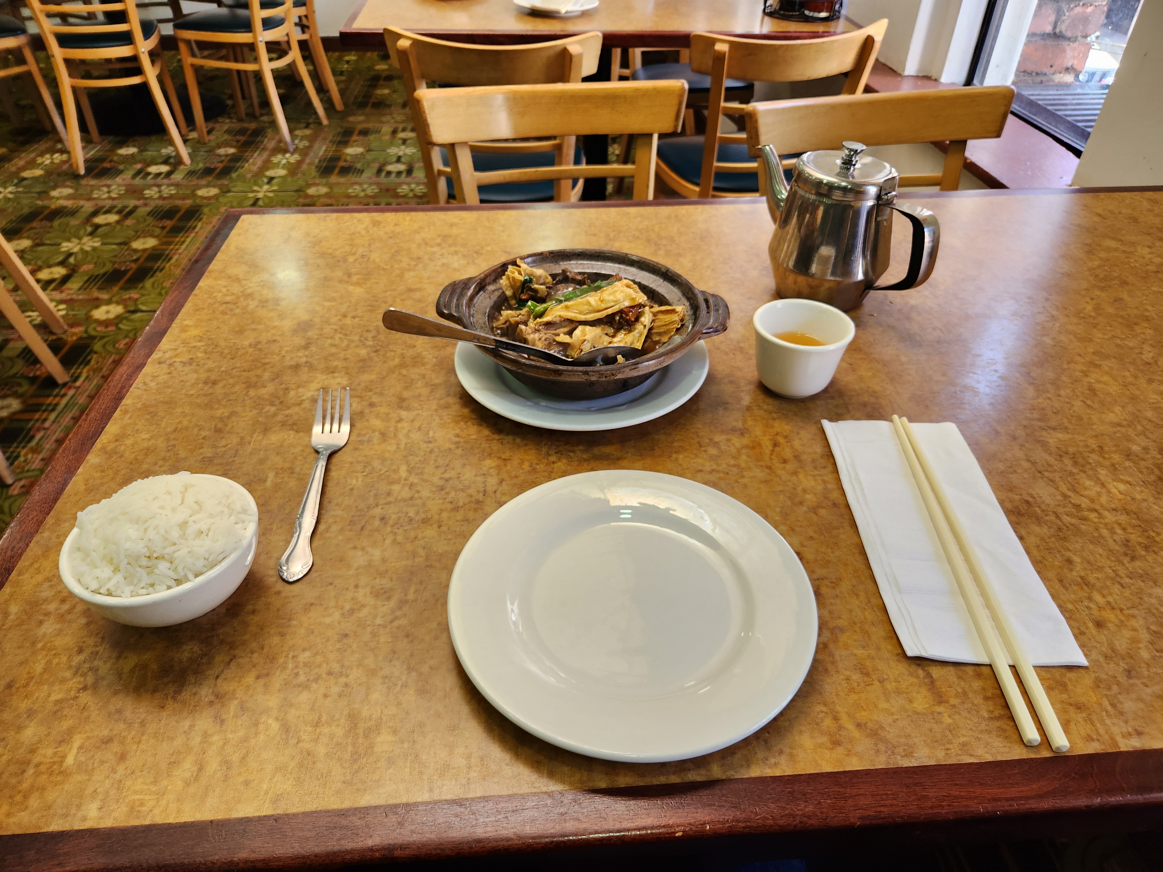 Capital Restaurant for some Cantonese classics: Fried rice, Chinese broccoli in oyster sauce, Mongolian Beef, and Chow Fun, with a cup of hot oolong tea to top it off